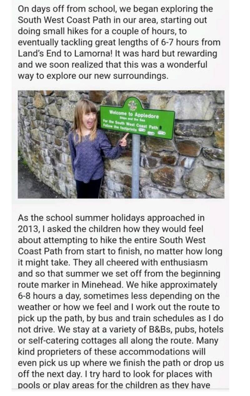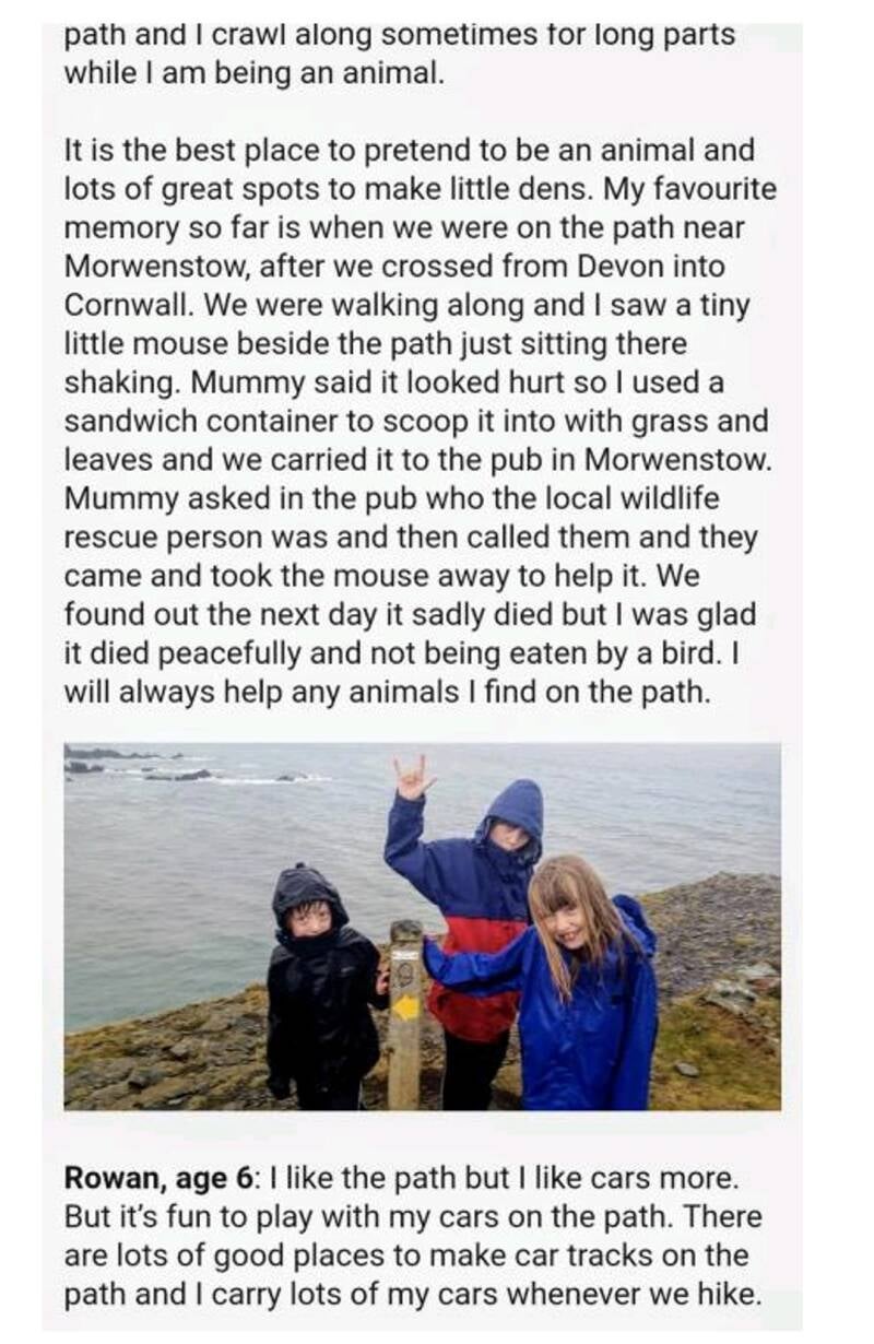 In 2015 I was given the opportunity by The Ramblers to write an article for their magazine on my coast path hiking adventures with my children.