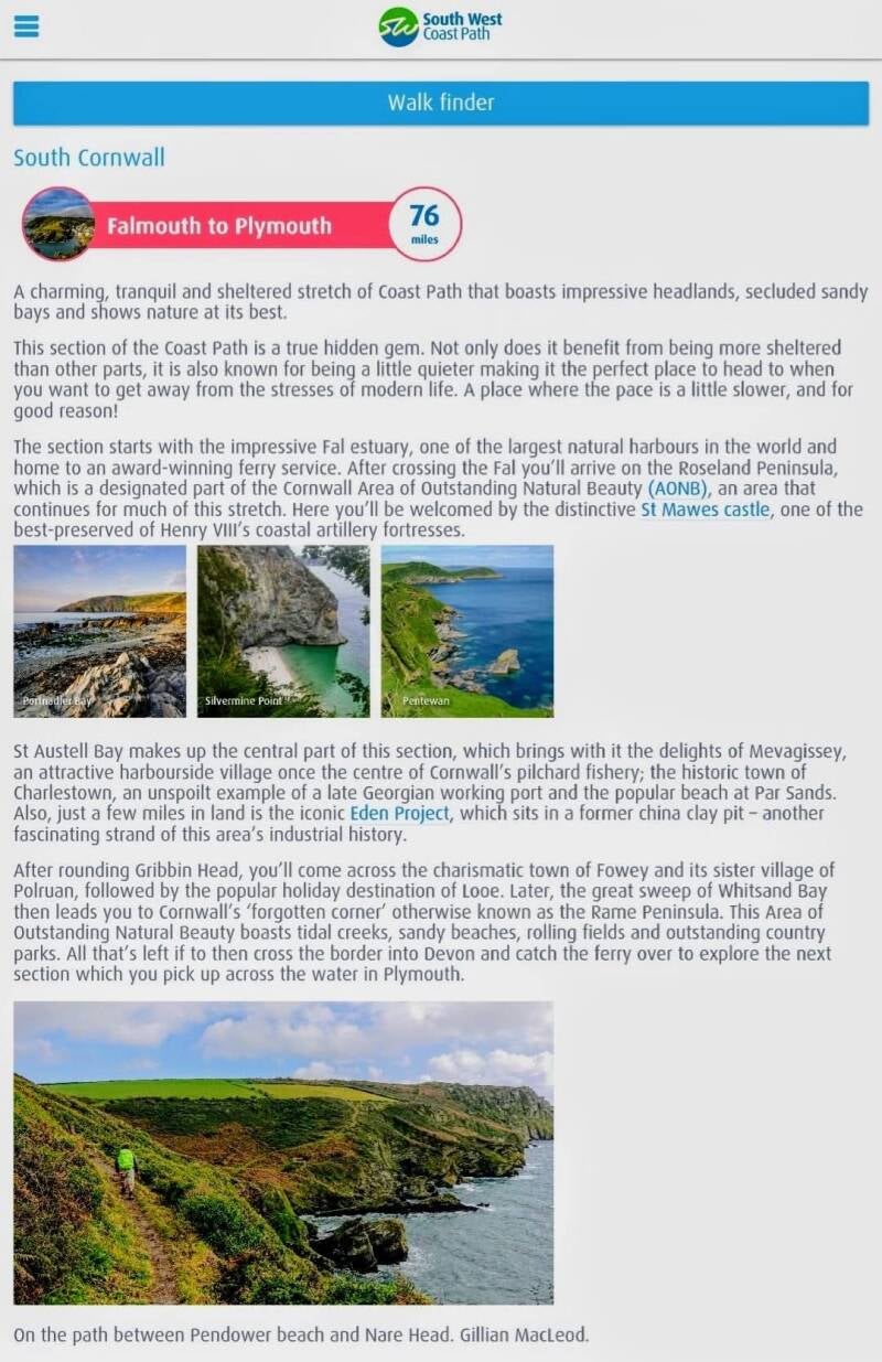 In 2020, one of my 2019 photographs of my husband Eric on the coast path was used by The South West Coast Path Association (SWCPA) for their online guide to the path in their "walk finder" section.